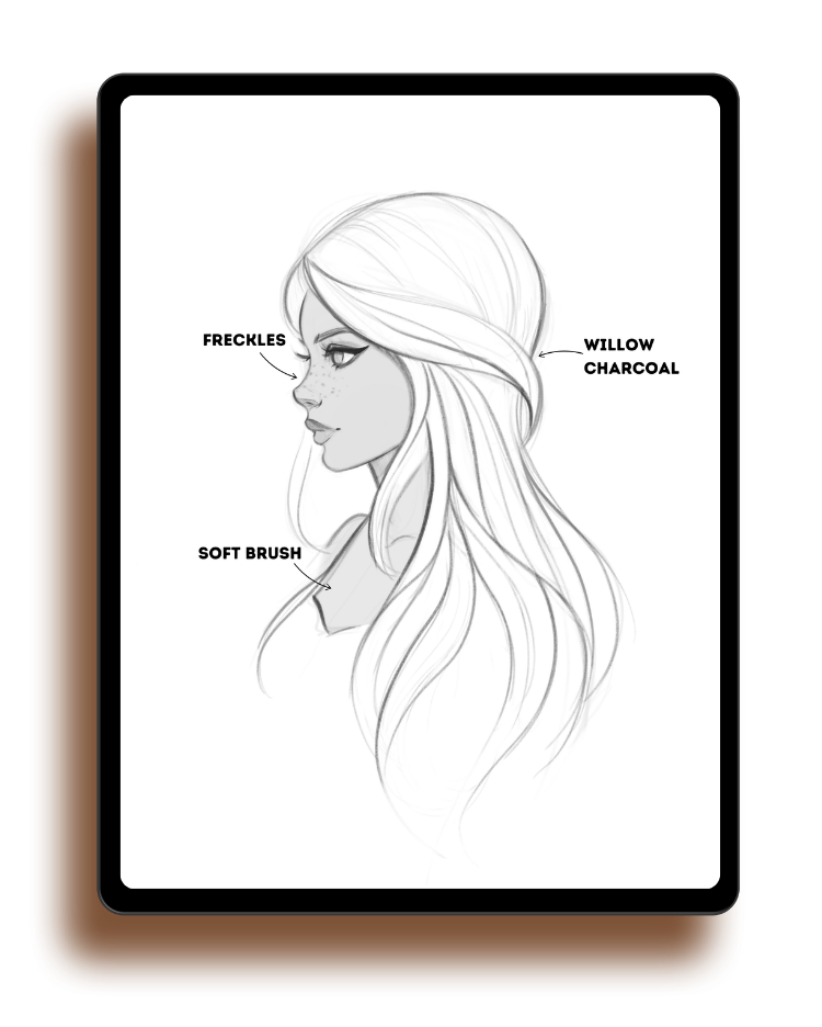 By the end of this tutorial, you'll have a refined character portrait that you can color digitally in Procreate, or even print for traditional techniques.